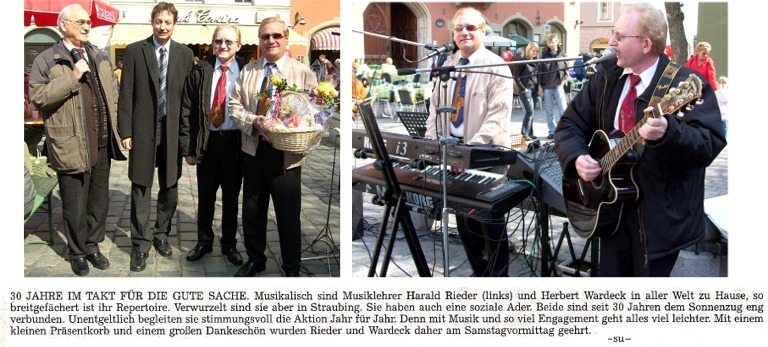 Musiklehrer Harald Rieder und sein Musikfreund Wardeck werden für 30 Jahre unentgeltliche musikalische Begleitung des Sonnenzuges geehrt!